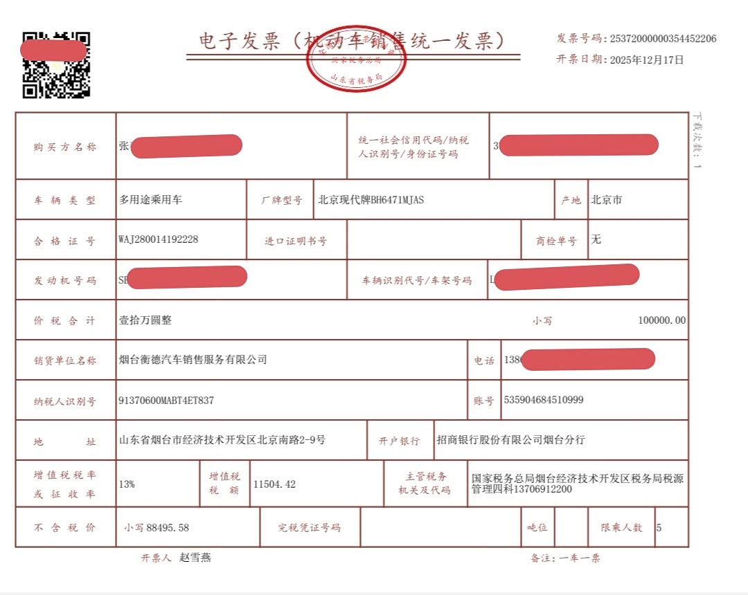 1.购车发票实拍