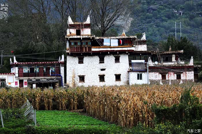 14:06 到达中国最美的村庄—甲居藏寨。丹巴山寨是嘉绒藏寨中最具特色的。尤以甲居、聂呷、革什扎和巴底乡最为突出,几百幢民居依山就势、错落有致地融于自然环境中,体现了天人合一的理念。远远看去,充满灵气的山谷中,翡翠般的青草绿树之中,是那沉甸甸的田地和隐在密林深处的寨房,伴着时有时无的潺潺溪流,一幅富有动感的绝妙山寨画卷随之展示在你的眼前。
