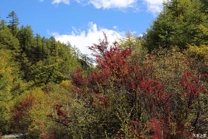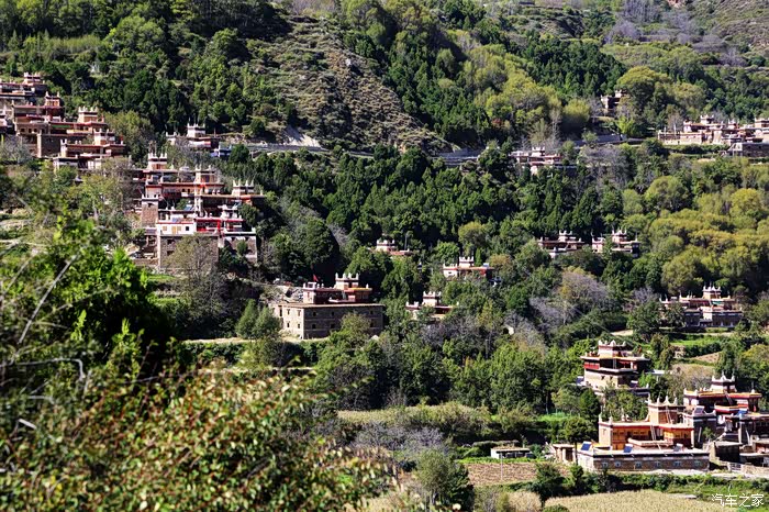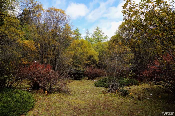 翻越波瓦山时,看到了对面山腰上的热乌寺,远眺寺庙会有一种与世隔绝的神秘感。热乌寺山脚下灌木丛生,密密麻麻,五彩斑斓,美不胜收。