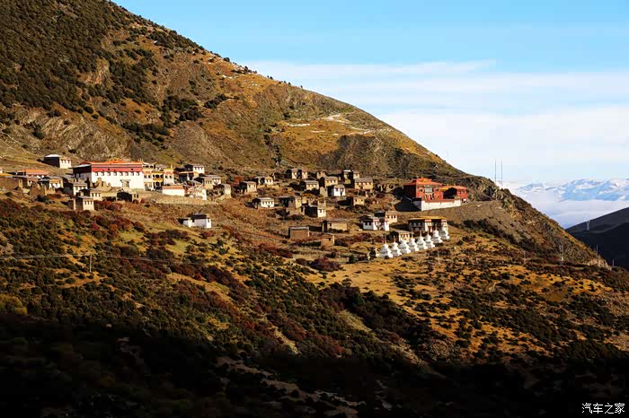 新都桥(海拔:3300米)—塔公(海拔:3780米)—八美(海拔:3500米)—丹巴(海拔:2000米)。新都桥晴天,室外温度3度。