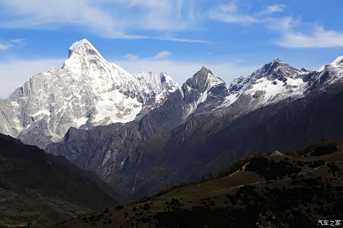 8:36 今天天气非常给力,从扎灌崩徒步到冲古草坝,站在高处观景台,整个冲古草坝的景致一览无余。蓝天为背景,阳光在助阵,仙乃日雪峰晶莹剔透,洁白无瑕。赶紧抓拍仙乃日神山,照相留影。仙乃日意为“观世音菩萨”,是亚丁三枯主神山的北峰,景区三座神山之首,是四川第五大山峰,佛位排在第二位。海拔6032米。她巍峨伟丽,雄剑如削,直插云霄。