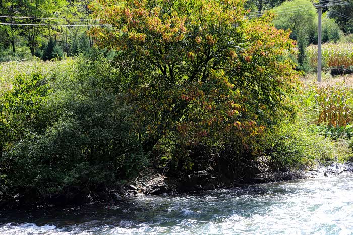 12:39 95公里,在牦牛谷天然盒景—绝美的峡谷中穿梭。抬头是断崖峭壁,裸露的石头缝里随意点缀着五彩斑斓的树木,低头是牦牛河水潺潺,清澈明亮。植被保存完好、品种繁多、林海遮天蔽日、郁郁葱葱;奇峰异石如林,沟壑纵横、石笋林立、别具一格;陡水岩飞瀑雷鸣。山间还有众多海子、谷底热水塘温泉蒸气氤氲,有城里的人开着车来泡温泉。神奇的景色犹如人间仙境,大自然鬼斧神工的奇迹,令人目不暇接、美不胜收。