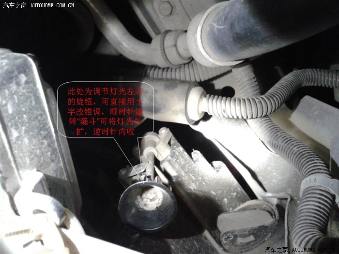 凯凯刚出厂时远光有点高,二保时就让4S店给调低点,结果,远光是低了,近光也跟着低了,晚上照的很近,非常不适应,于是晚上打电话问了一下4S,原来调大灯如此简单,就自己动手调高了点,和大家分享一下:
