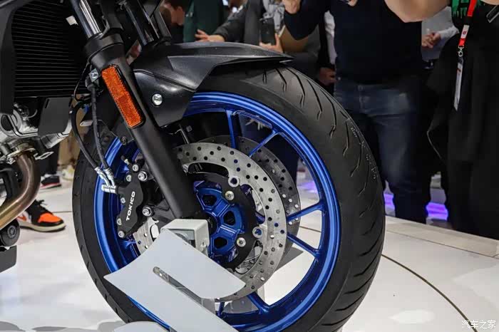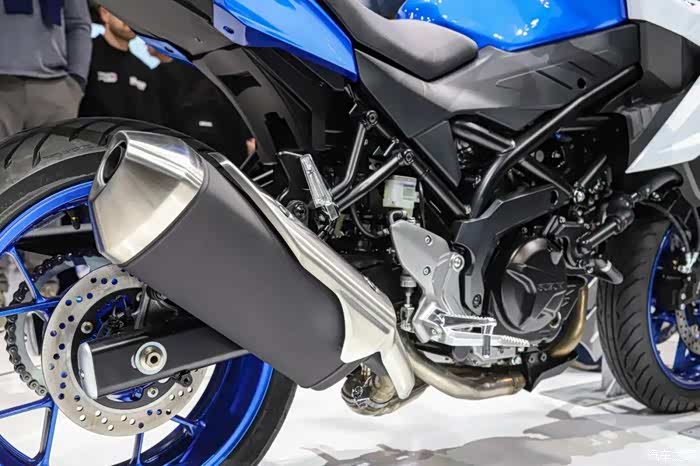 底盘方面,SV-7GX配备前17后17寸的轮毂,前减震为41mm正立式结构,不具备调节功能;中置后减震则具备7段预载可调功能。刹车上前轮为TOKICO对向四活塞卡钳配合290mm浮动双碟刹,后轮则为单活塞卡钳配240mm单碟盘,标配双通道ABS的同时还具备三级可调的STCS循迹控制系统。
