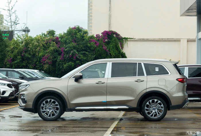 车身侧面比较方正,尤其是D柱比较平直,这样的设计就是为了第三排空间所考虑,也是因为这样的设计让这台车看起来比较显大,但尺寸方面以中大型SUV的级别来说中规中矩,新车长宽高分别为4905/1930/1755mm,轴距2865mm,定位入门中大型SUV。