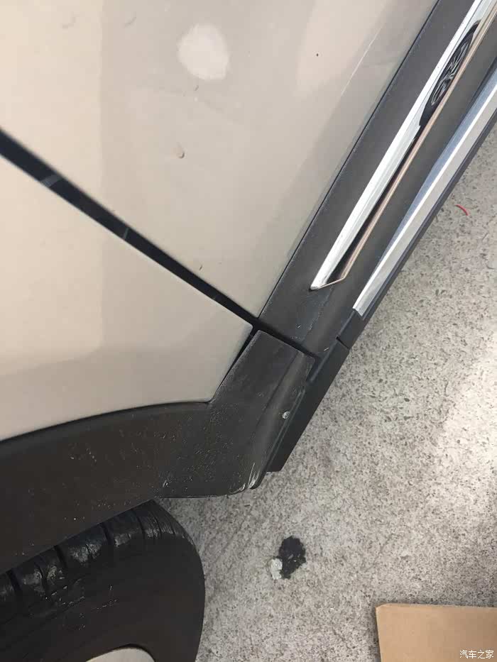 我的是右边,到4s店师傅也没怎么出来,就是用撬棍弄了下与黑色侧裙结合处,弄好只是缝隙小了些(因为我的有点陷进去了),也没磕着,现在没理它了,3m胶也没粘稳