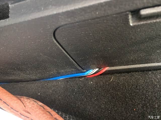 从工作台一直塞到车门密封条这里,把线顺到密封条里面一直到最下面,把脚踏板翘起来,把线从脚踏板下面走