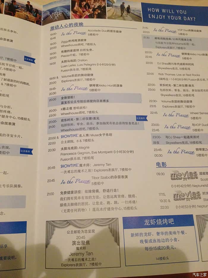 船上节目单
