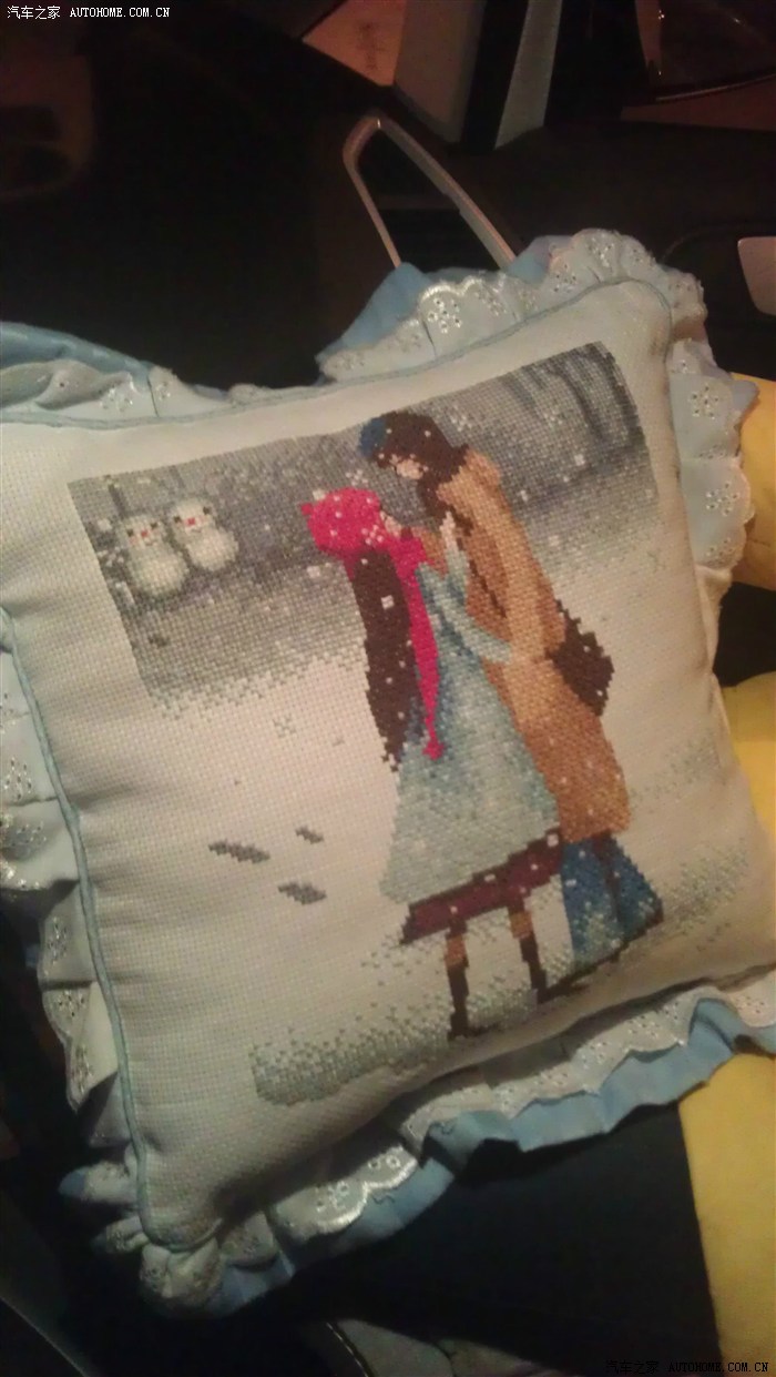 未来媳妇绣的抱枕,放在了扶手箱的位置,就为了这个都没买扶手箱。满满都是爱