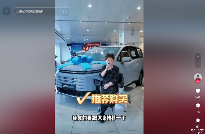 这两天在抖音上一批网红为大通G50宣传,而且11.98W的价格吸引人,6月销量可能会上去了。