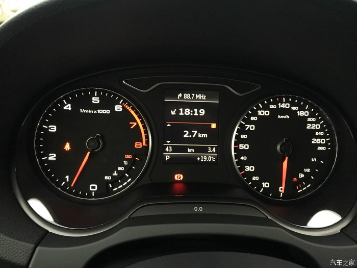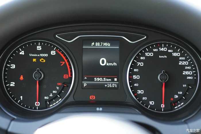 奥迪的时速表还是很会骗人的,说的不是不准,而是在0-100km/h这段区间占据了表盘的1/2,在加速的时候表针提升相当猛,很有视觉冲击力。