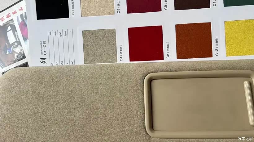 织布选色,相对于前面的施工,这个是最让我头疼的,因为这台车的内饰主体是米灰搭配,皮革和布料必须使用一种颜色,而这两种不同的材质,要想达到颜色统一。就得从上百种布料和皮革中进行匹配,并且在不同光线下面所呈现的颜色也不一样,这就需要大量的时间去做寻找,所以这也成为了这台车最费眼力的一个项目。不过功夫不负有心人,最终完美实现。