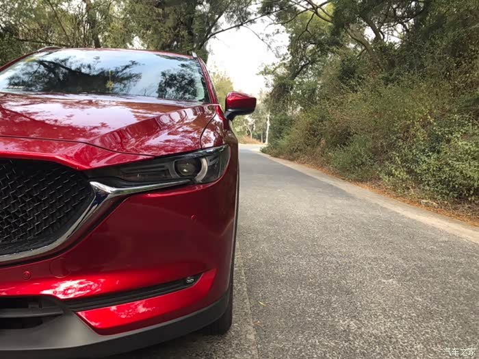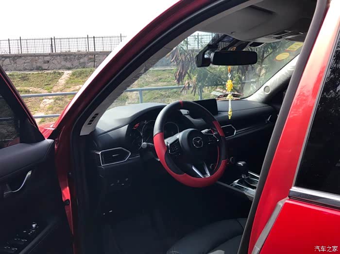 聊回今天的主角。CX-5,犹如养在深深庭院里的大家闺秀,“她”内外兼修,有超人的颜值,也有过人的科技含量。在选车过程中,对比过相同价位的其它车型,昂科威28T配置不错,就是有点臃肿,隐隐有面包车的感觉;翼虎各方面也不错,就是外观上欣赏不来,感觉不够大气;CRV、RAV4、5008都了解对比了,要么配置上要么外观上一一被否决。CX-5,实车比图片好看得太多太多,去4S店,大门进去正对着的就是一台红色的CX-5,瞬间就深深地被吸引了,漂亮的销售顾问小姐姐安排了试驾,在小姐姐热情周到的服务下,我义无返顾地选择了“她”。