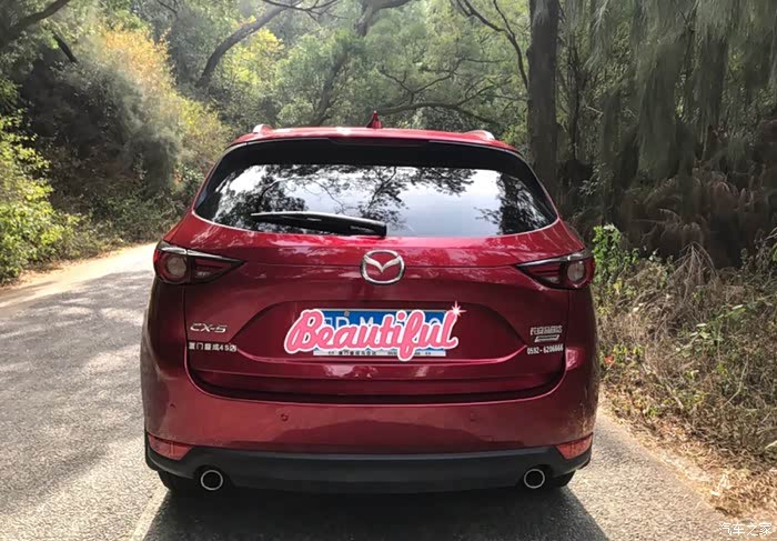 在我眼里,魂动红是“她”最美丽的衣裳,在不同的光照强度下,呈现在眼前是不同的美。定的是2.5的排量,给我的感觉是在俊秀的外表之下有了那么一丢丢的小暴力。记得有位前辈说过,动力就好比存款,不会天天用到,但到了要用的时候得有。这个比喻太贴切了,好吧,我没有存款,就存一点动力吧。2.5的排量,对于温柔的驾驶者,油门踩得轻,通常转速在1800以下,变速箱即从容地切换档位。想要来点激情,深踩油门,转速瞬间升至3000转以上,仿佛有源源不断的洪荒之力带来强烈的推背感,体内的飙起的肾上腺素,让人感觉到脑门发热。关于空间和配置,只要不拉货,空间使用上绰绰有余,后排坐三个大人轻轻松松。后备箱也很大,而且设计得很工整,做到了空间利用最大化。配置上,我最想要的是前后雷达、自动驻车和电动尾门。有了前后雷达,对于驾驶者来说,就好比多了一双眼睛,对车的周围看得更清楚。对于一个绝大部分时间在城市里行车的人来说,自动驻车带来了极大的舒适性,行车过程中,基本上管住油门刹车就够了,档位不用管。电动尾门,用过之后就知道它的好处了,而且***老高了。除此之外,CX-5还有几个配置要点名表扬。盲点监测极大地提高了行车的安全性,在我的驾驶过程中,盲点监测几次有效地提醒了我。抬头显示也是一个很好用的配置,行车过程中基本上可以不看仪表盘了,而且时速显示数字化,包括定速巡航也同样在抬头显示中有显示,行车速度一目了然。再一个CarPlay,手机高德地图导航投到车载屏幕上,跟原车导航没什么区别,而且手机上地图更新更快,使用更方便。