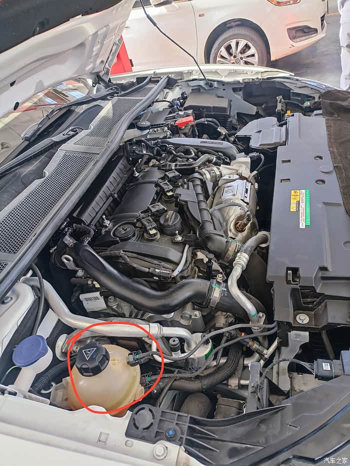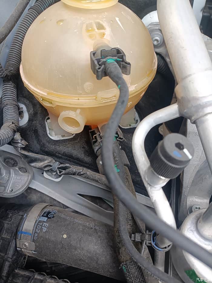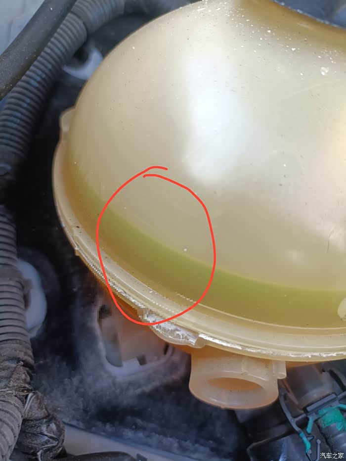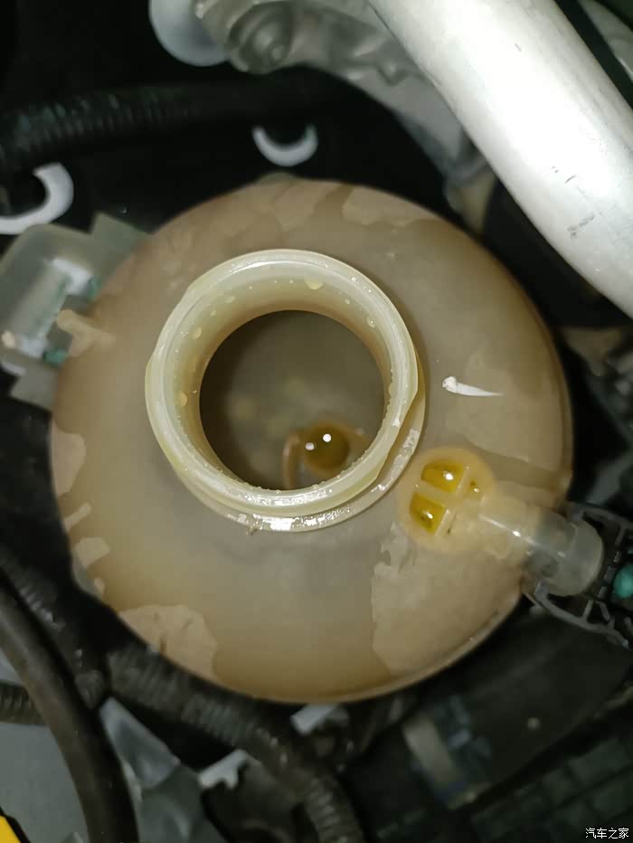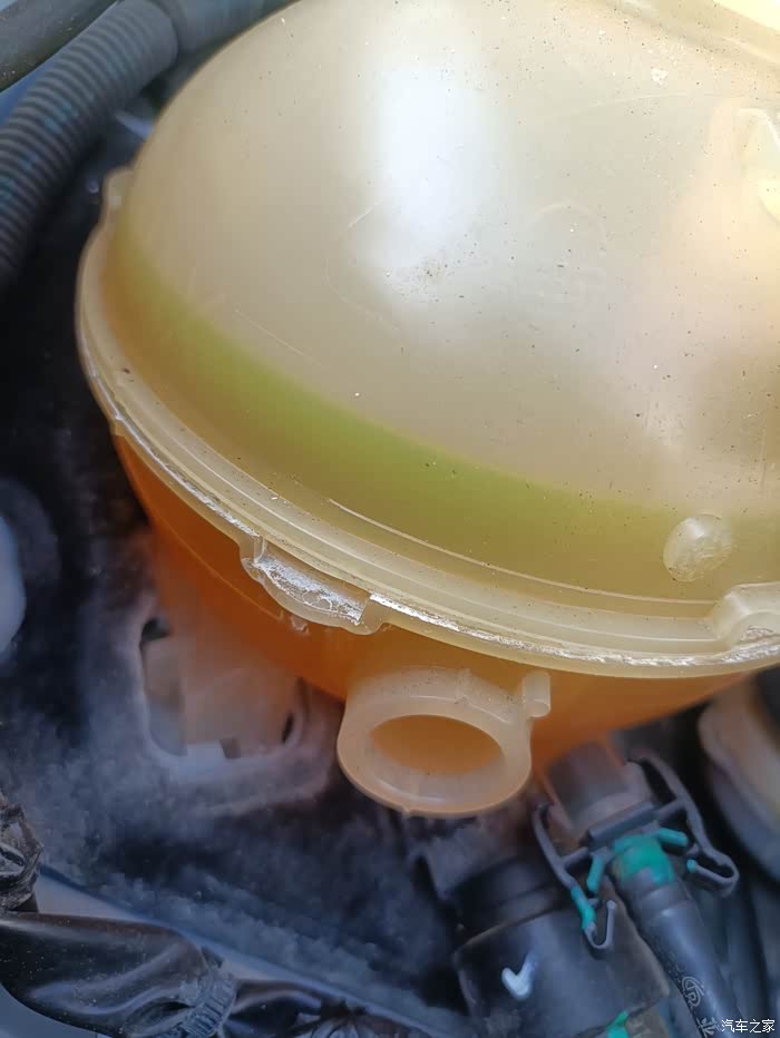 打开引擎盖位于副驾前面有个黄色的壶