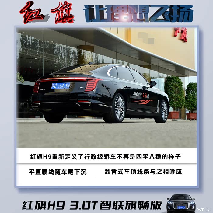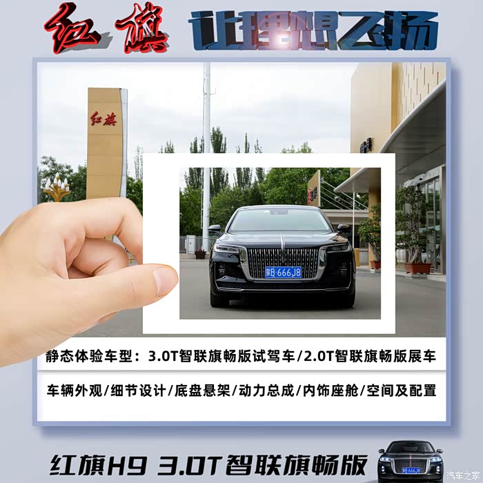 接下来的环节就请友友们与我一起来对这台红旗H9 3.0T 智联旗畅版从外观到内饰、从配置到空间、从底盘到动力总成等方面进行品鉴和体验吧。