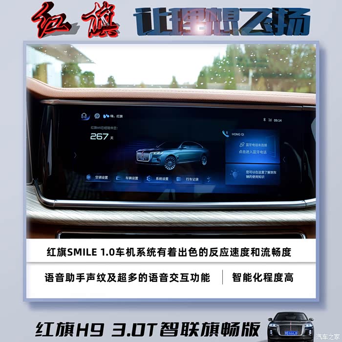 红旗旗下的多款车型里面,我很喜欢H9,不仅是因为这款车级别高、气场足、有排面儿,而且我也常坐常开,因为我的同事就买了2020款2.0T 智联旗享版。动力相当不错,平顺性也很好,那台车的配置已经够高了,但我的同事还觉得缺了ACC、座椅按摩、HUD、自适应远近光啥的挺遗憾。我车上那些他说的配置一样没有,车开得不也好好的嘛,矫情!我对H9的好印象一直都在,这次到店,试驾车居然是一台并不太走量的3.0T机械增压车型,一下子就让我兴许盎然了,索性就体验一番3.0T 智联旗畅版。
