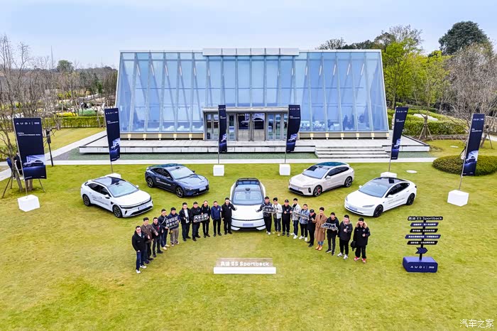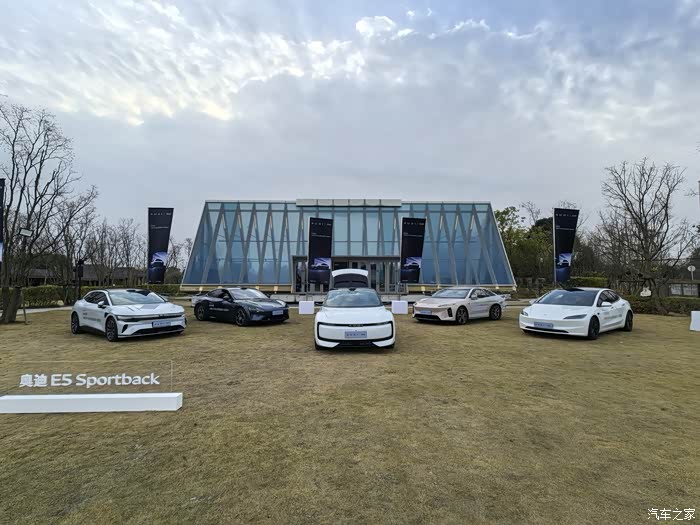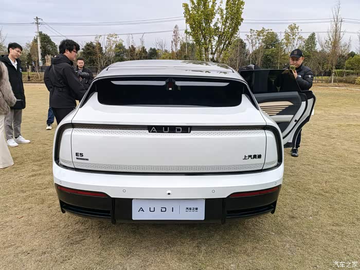 讲解一结束,静态体验区的五台车立刻成了焦点——奥迪E5 Sportback、小米Max、特斯拉Model3+、极氪007GT、蔚来ET5T摆放在广场上,奥迪E5 Sportback妥妥的C位。我几乎是直奔E5而去。