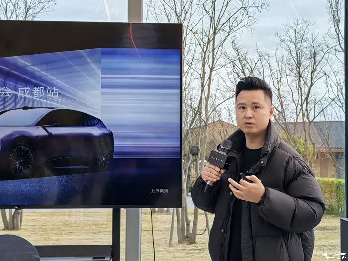 等所有嘉宾到齐,我们被主持人引到讲解区,产品经理向我们详细介绍了奥迪E5 Sportback的产品亮点。
