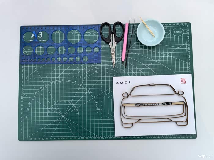 衍纸的模板是一辆奥迪汽车,也迎合了今天的主题。