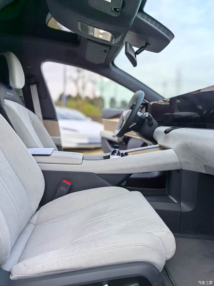 拉开车门坐进去,相信我,所有人都会被其智能座舱的设计所震撼。59英寸的4K超清广域屏横亘中控台,左右分别是两块Mini-LED显示屏,连接流媒体外后视镜,科技感十足。8295芯片的加持,让这块巨屏丝滑流畅到无半点卡顿,甚至我手里的旗舰手机都稍感逊色。