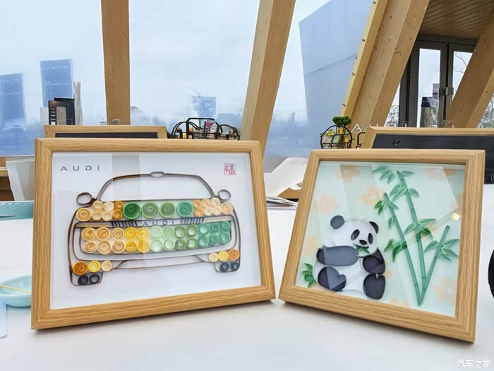 饭后按分组行动,我在D组,先去了衍纸手工区。原本以为等试驾会枯燥,没想到工作人员早备好了彩色纸条和模板,手把手教我们衍纸工艺的制作,在老师的帮助下,我这种手笨的人,也慢慢做出了个像模像样的成品,这份特殊的奥迪衍纸作品,还能直接带走当纪念,真的让我非常开心。玩得正投入时,工作人员过来说“AB组试驾完了,咱们可以换场了”,心里的期待值瞬间拉满。