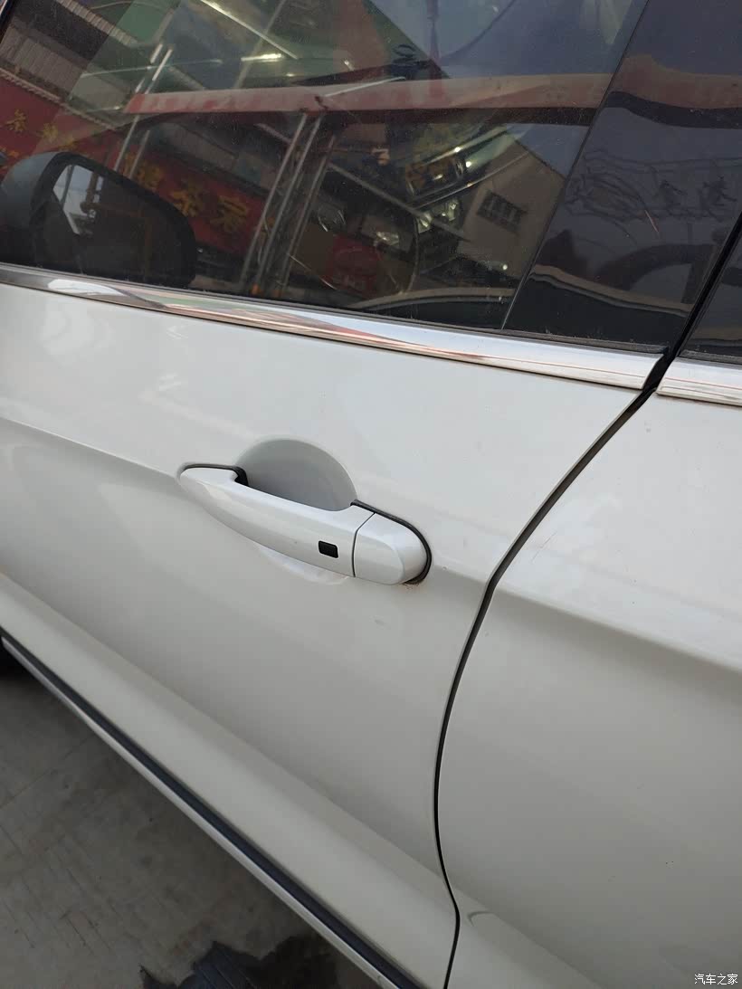 首先,在车门左侧拉手旁边的白色装饰盖是可以撬开的。