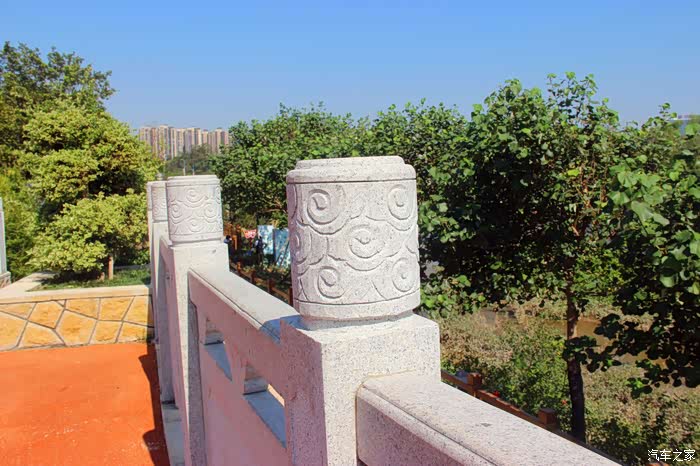 步行来到公园,现在太阳已经出来了。公园是建造在一条河边。围栏是石材建造而成的,表面上有很多雕花。