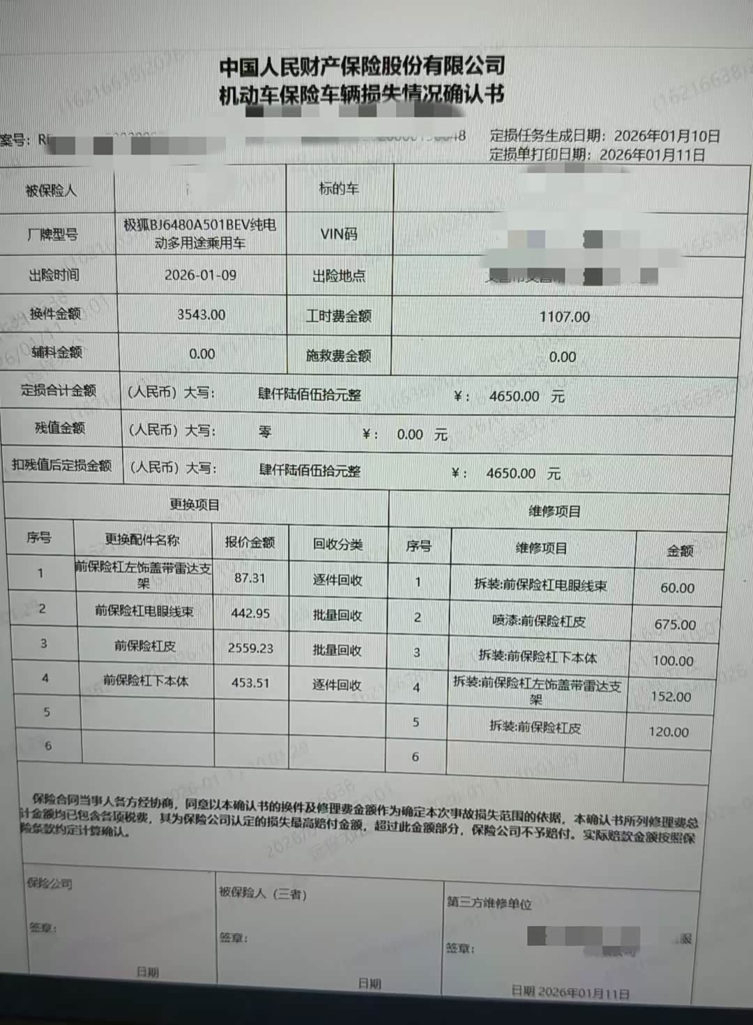 刚提两月的新车,媳妇出小区的时候和人碰上了,表面看着只是剐蹭,左前的雷达错位了,自动泊车也不能用了,我还以为把雷达复位就行了,到4s店检查结果是雷达线束断了,需要更换整个线束,前保险杠的外皮,保险杠下面的前唇地板,还有雷达支架嵌片,加上喷漆工时啥的,报价四千六,这要不是有保险真修不起,太贵了,还没有现货要订货。