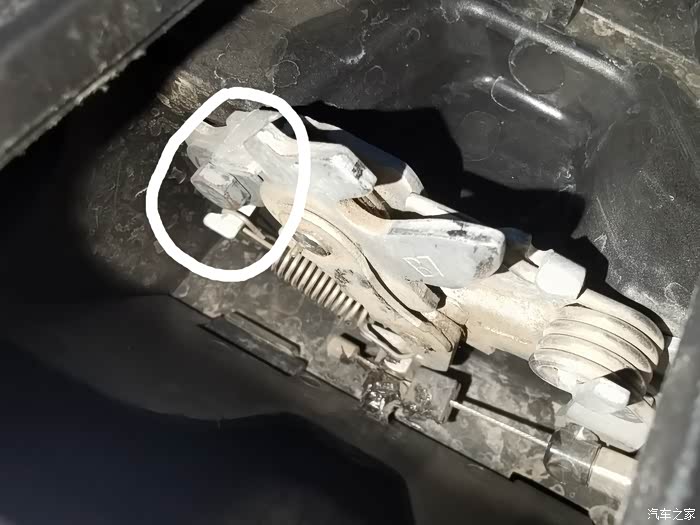 两张图圈中的螺丝是锁扣机构的固定螺丝,其背帽是固定的,拆卸时不必担心掉落。使用棘轮扳手拆除这两个螺丝。