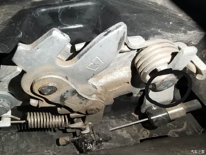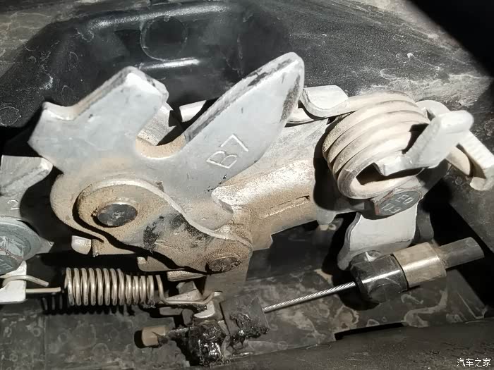 近些年PSA多款车型引擎盖锁扣机构的挂钩与拉线采用塑料卡子连接。卡子长期处于发动机运行的高温环境中,易老化,开启引擎盖时的拉力有可能使卡子断裂。直接后果就是发动机引擎盖无法开启。雪铁龙天逸卡扣机构处于比较封闭的位置,想从前脸缝隙伸入小铁钩套住锁扣机构,打开引擎盖,只能靠蒙,且用时很久。