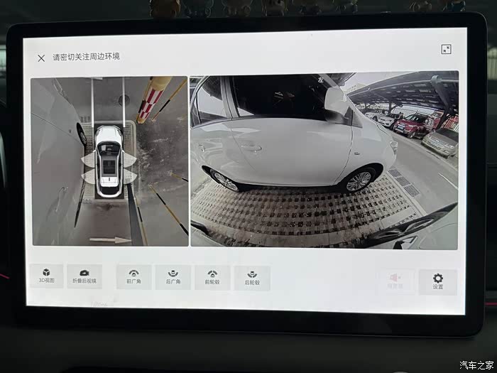 360全景影像晚上噪点很大,晚上停车或者在光线不好的地方,影像的清晰度不够,看得不是特别清楚。副驾没人的话,就得靠自己的感觉来判断距离,有点影响使用体验,让我比较头疼,总是害怕撞到。
