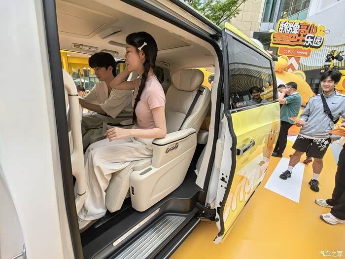 5米多 的车身长度不显臃肿,平直的车顶和双侧电动侧滑门设计,路过的家长都忍不住感叹 “这车门对孩子太友好了”。现场工作人员演示电动侧滑门时,门体缓缓打开,没有刺耳的噪音,连旁边婴儿车里的宝宝都安静地盯着看。完全符合家庭用户 “耐看实用” 的审美需求。
