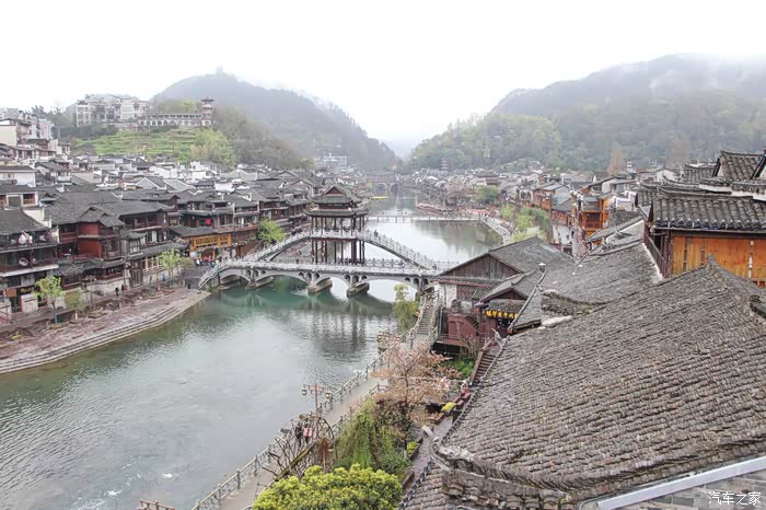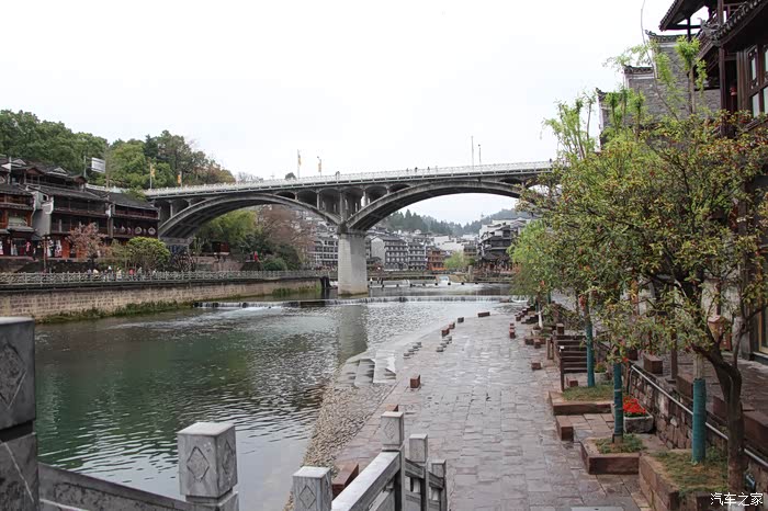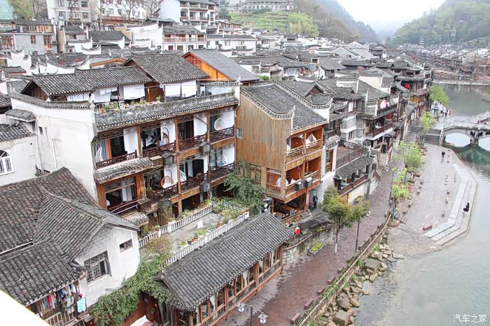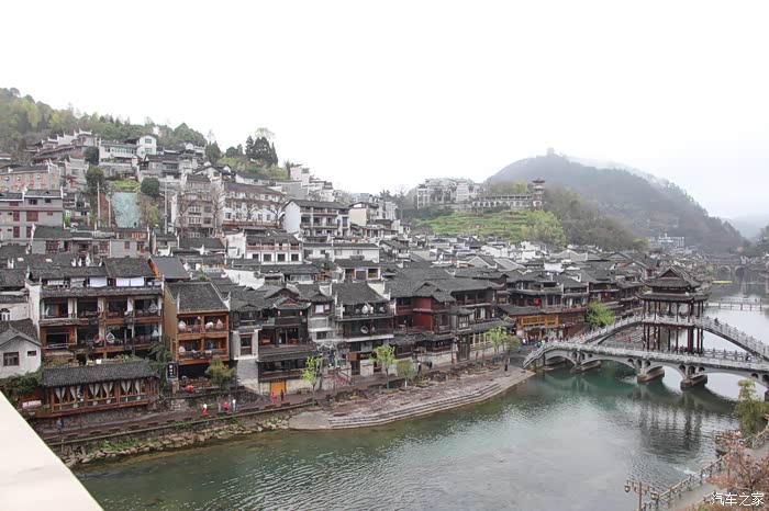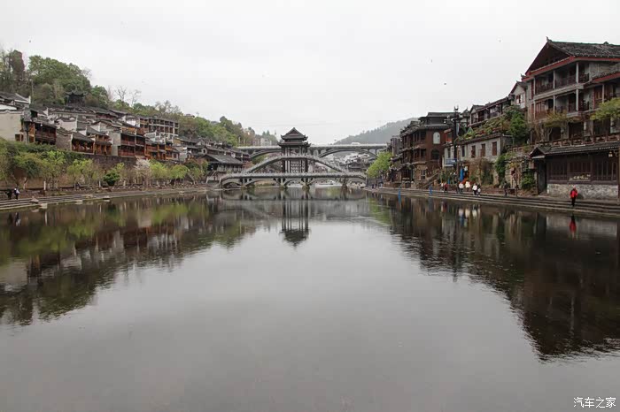 雨后的凤凰古城,漂亮干净清新,空气滋润,真是游览的好时候。一条宽阔的沱江相隔,将凤凰古城分为两部分。虽然说沱江两岸合称为凤凰古城,但是南岸是古城,因为它有城墙城门,北岸应该是凤凰城的新城。