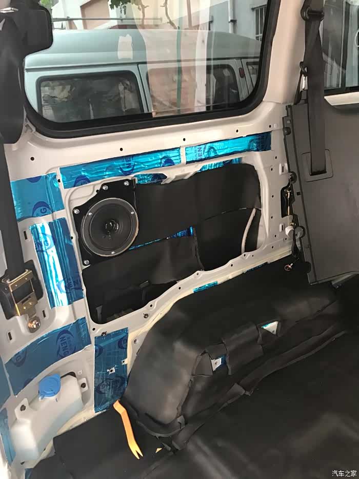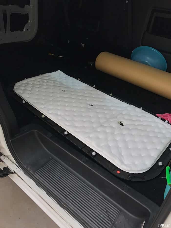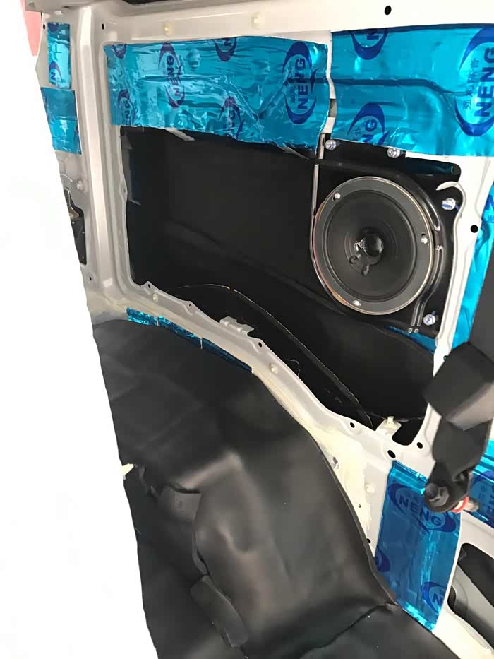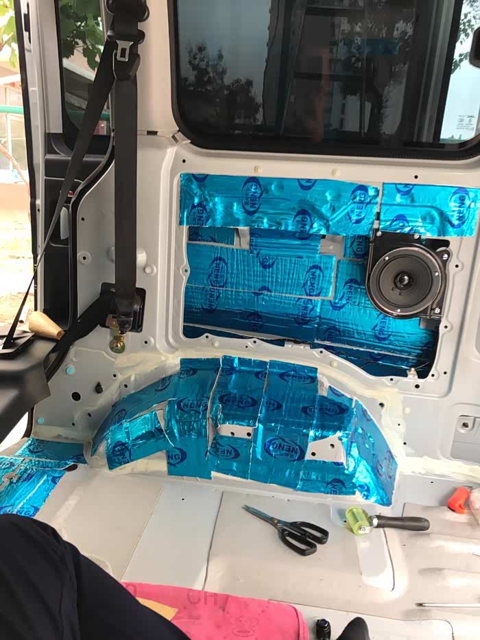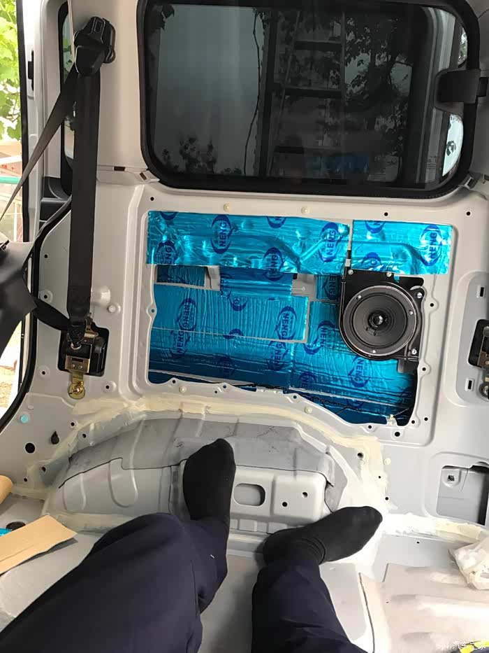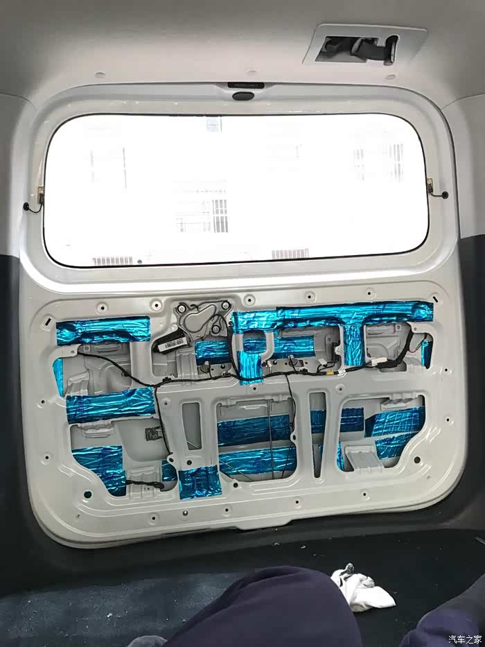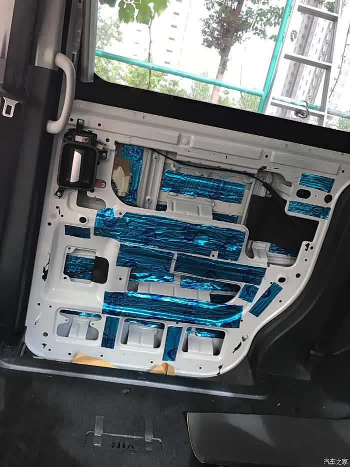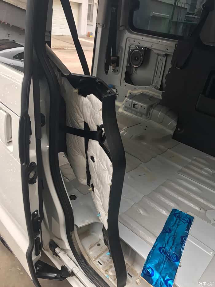 后门,同样铁皮上一层止震板一层隔音棉,内饰板一层白棉。