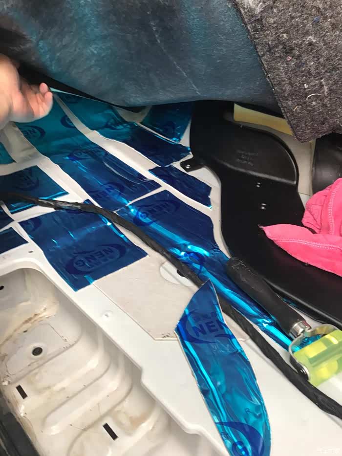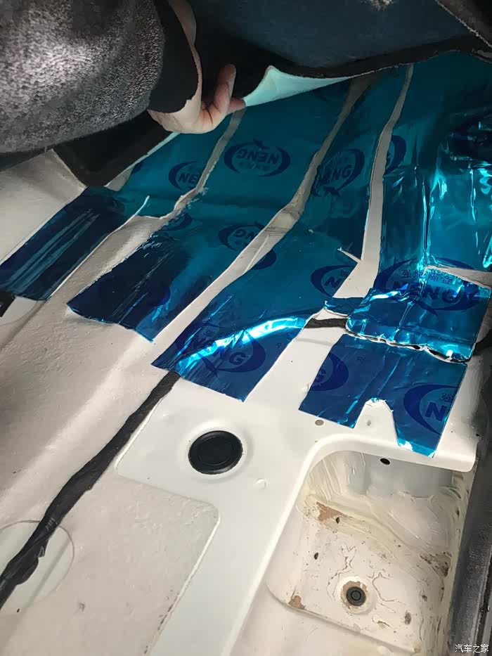 止震板用的是条贴,没有贴满。具体道理不啰嗦了,可以问百度。止震板贴好后,贴第二层隔音棉。