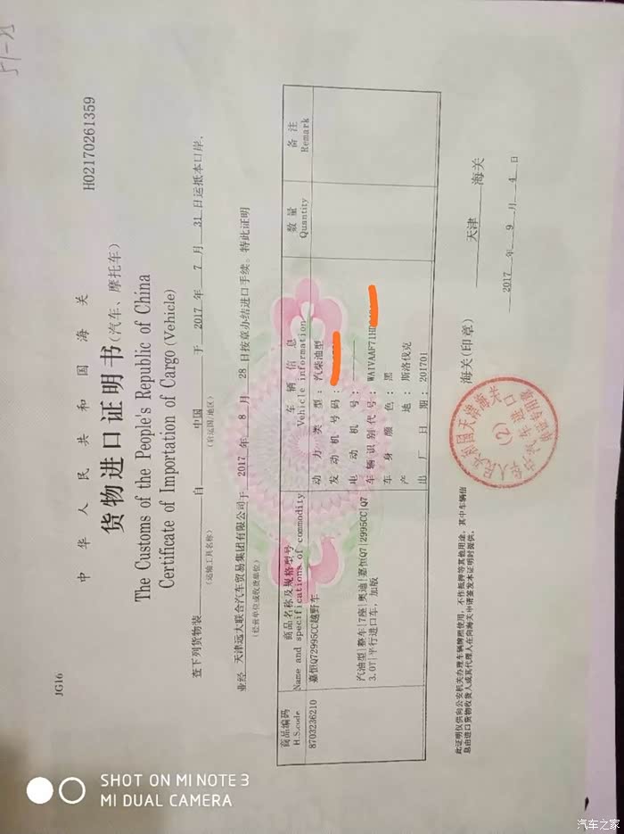 验车:车是17年1月生产,9月进的港,十一之后通关出来的,看到车库里
