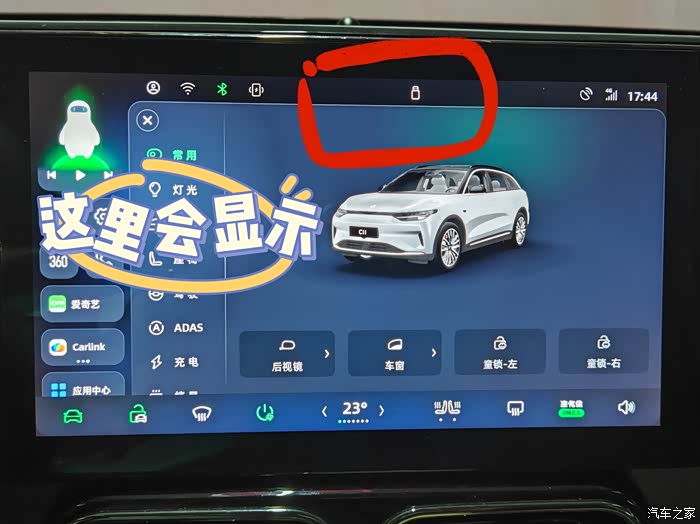 四、童锁及车窗锁的使用小技巧。当车上有小孩的时候,怎么知道有没有锁上儿童锁以及车窗锁?其实可以通过屏幕的上方的童锁和车窗标志就知道,当有显示的时候,就代表锁上了。图标消失,就代表没有。