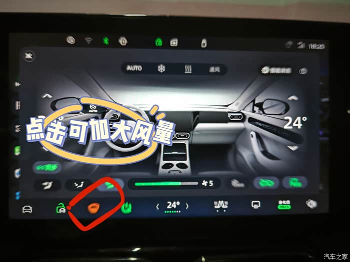 一、图标多点击的功能。中控屏幕中有一些功能按键图标点击是可以切换功能的。例如中控下方的前玻璃除霜功能,点击第一次是3档风力,点击第二次是5档风力。