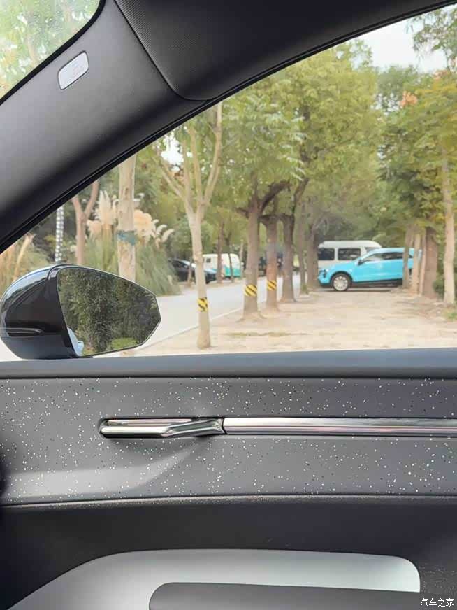不过我也发现EX30有个非常好的点,它的转弯半径是真的小,这倒是特别好绕小区里那些弯弯绕绕的路。但问题也有,内饰那个极简屏幕,我觉得日常开还好,反正导航、车速、音乐都能看,但想快调点啥设置,比如空调风向、座椅加热之类的,得点两下才到,开车时候操作其实不太方便。虽然能用语音操作这个东西,我自己是能接受的,但我老婆可能会不太喜欢。然后我比较在意的是隔音。试驾的时候那条路铺装一般,轮胎噪音比我原来的油车要明显一些。