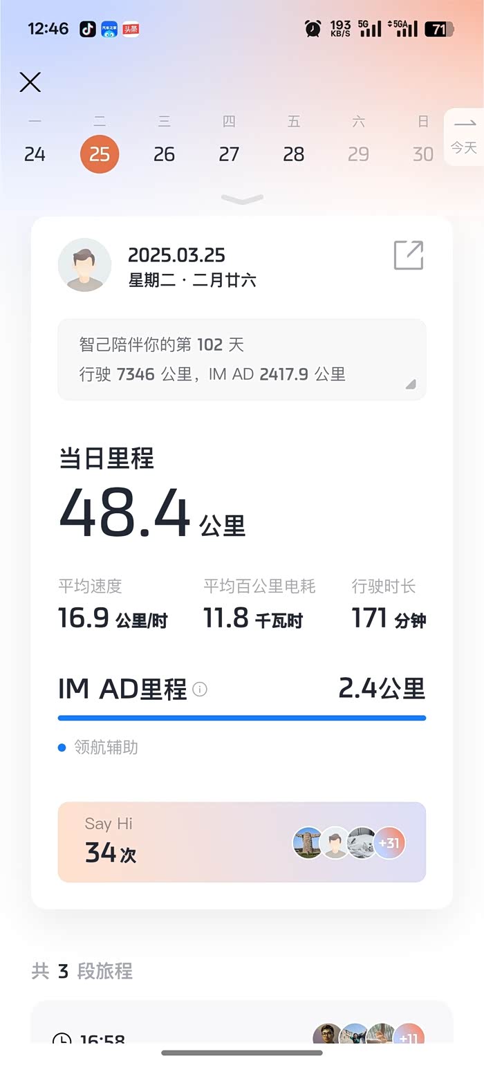 提车三个多月,驾驶模式设置的一直都是舒适模式,用过一次节能模式,感觉加速太拖沓了,就切换回了舒适模式。春天慢慢到来,最近也是天气转暖,温度升高之后,其中变化最大的就是车子的电耗,一个重量大约2t的中大型suv,平均每天的电耗都在百公里11-12个左右。折合电费成本,我因为是租的房子,所以没办法安装家充桩,只能使用的是外边的公用充电桩,白天电费贵点,1.5元左右,晚上便宜很多,基本都在6毛多一点,按照平均电价1块钱1度电来计算,百公里电耗12个就是12块钱,折合下来就是一公里0.12元,这个使用成本已经很低了,对于之前开油车的我来说,这个费用属实有点震惊,相当便宜。如果有家充桩,会更便宜,按照民用电费来算,晚上一度电大概3~4毛左右,成本下来接近一公里4分钱,这个数字就问谁看了不心动啊!