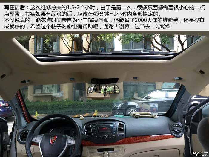 老婆提出的问题,一定要马上解决!首先上网认真的查了,原来天窗漏水的案例太多了,什么品牌都有,什么奔驰、宝马、奥迪甚至保时捷,照漏不误!这下算明白了,天窗漏水,并不是什么自主品牌车的质量问题,只是一个很普通的小毛病,没什么好大惊小怪的,首先在心态上就放正了。