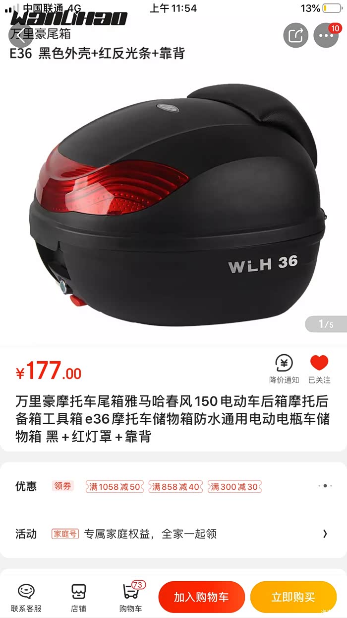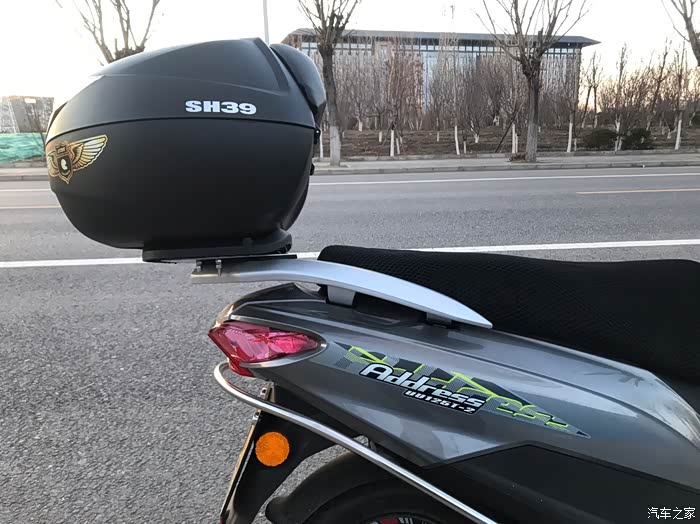 买的UY自带的小尾箱只能说是凑合用,很小,3/4盔装不下,也比较单薄。后来就拆了。