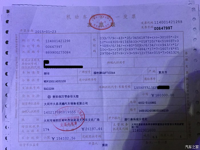 再来算一下我通过自己去银行申请贷款买车的费用。车价181800元,9万元3年利息10800元,全险6500元,购置税15400元,上户350元,总计214850元。比通过4S办理少了10000元。就是自己跑跑腿,其他的没什么,这样就可以绕过4S的各种捆绑销售,少花不少钱。虽然提车晚了20多天,但是省下10000元,给自己置办了苹果6,给女朋友置办三星NOTE4。我是觉得这帐很划算的。