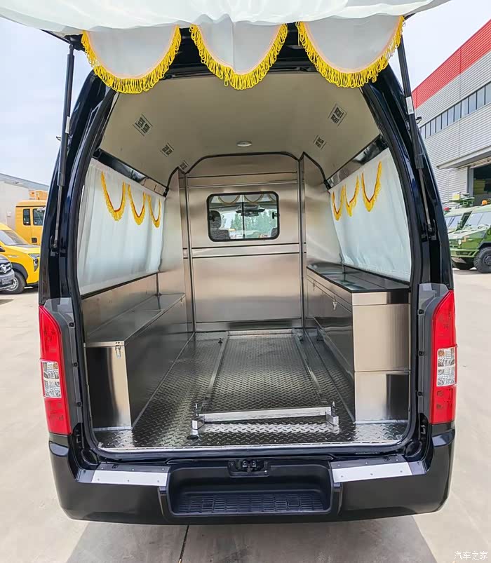 整车配备航天三菱4K22D4M型汽油发动机,2.4排量160马力,五档手动变速器,液压助力转向、电动玻璃、遥控门锁、驾乘区(可选装后舱)空调、ABS制动及胎压监控系统,选装铝合金轮毂、导航及倒车影像。双排五人座椅、不锈钢隔断及地板、常温棺及冰棺可任意选装。
