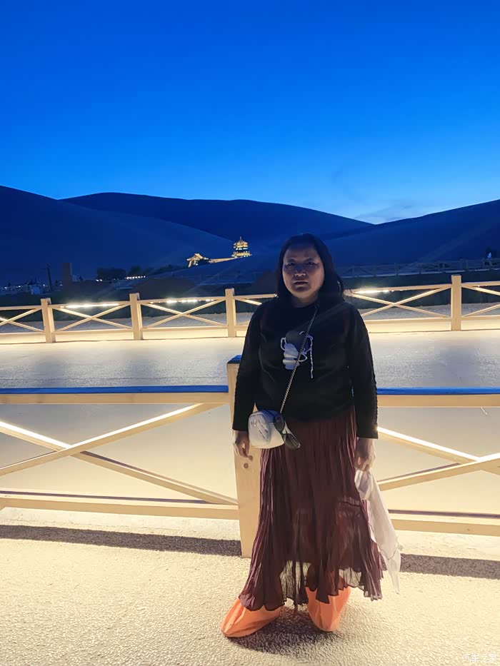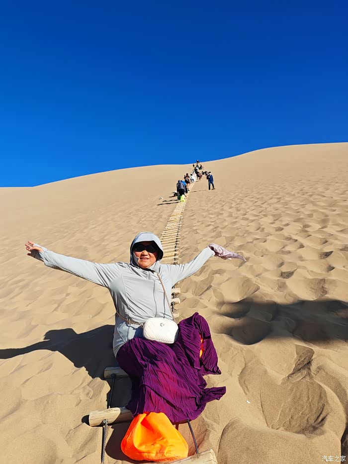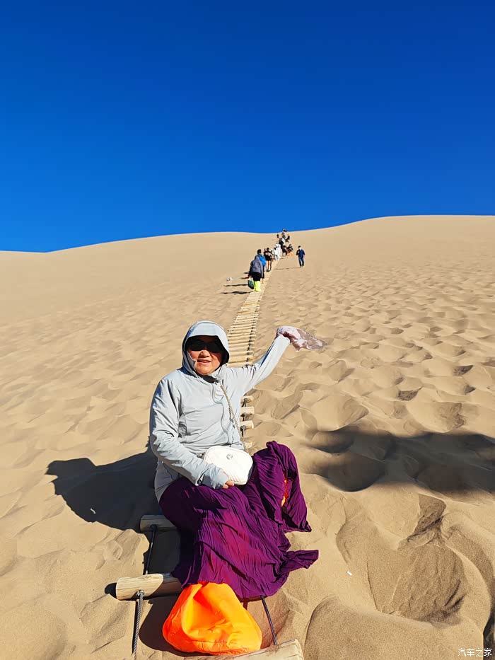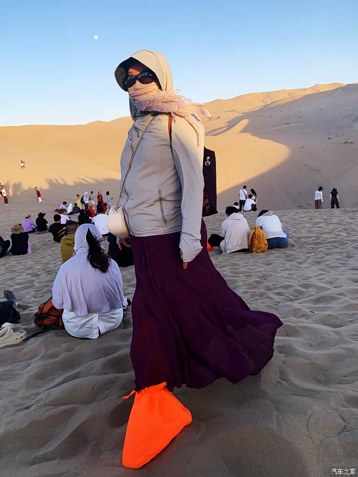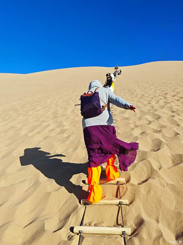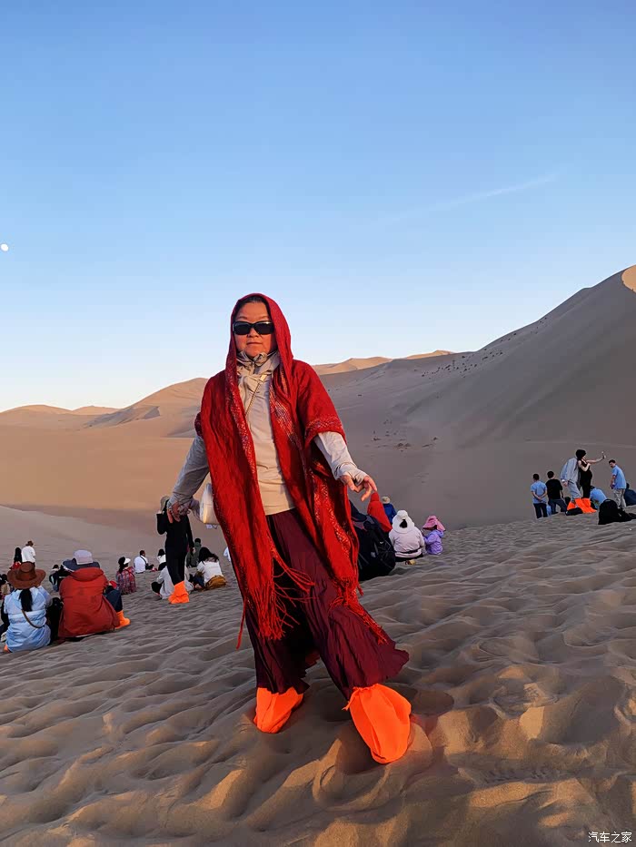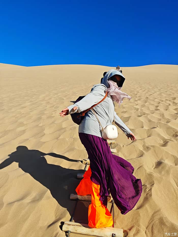 民宿就在鸣沙山下 在露台 可以看见景区 走路十几分钟 我们是6点去的景区 依然很晒