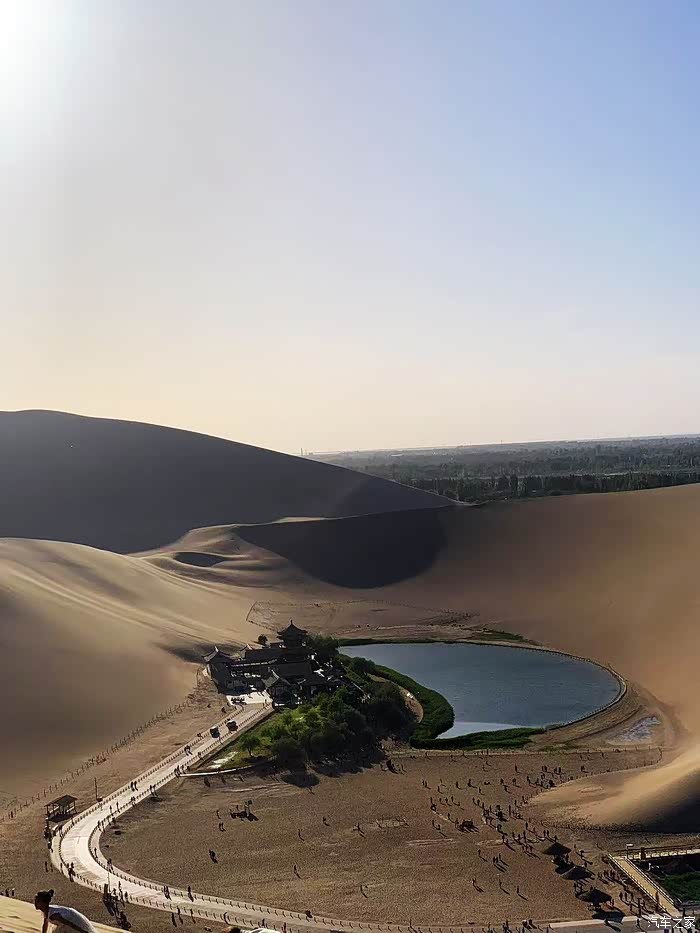 沙海之中一汪清泉?巨大的反差,在听“月牙泉”时泛起的疑问,今天得以解惑,存在就是合理,鸣沙山怡性,月牙泉洗心,两者相互成全。