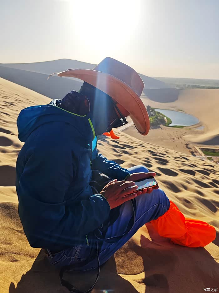 5月10日早上,结束了在冷湖镇政府的露营,打扫干净地面,收拾好装备,给昨天一起穿越火星一号公路的陈哥两口子电话告别(他们在交管站露营,准备经茫崖进新疆),而我则要恋恋不舍的开始青甘大环线的闭环之旅了(已经到了新疆的门口,却只能朝里面望一眼,多少有点失落),继续走215国道,上柳格高速直奔敦煌月牙泉。全程272公里,三个半小时就可以到达,今天是大晴天,鸣沙山适合下午6点以后去玩,时间充裕,就准备先去给75p做首保,没想到预约电话打过去,老板非常热情,连连问到我什么时候来的敦煌啊?来了几个人啊?问的我有点莫名其妙,我说我只是来做个保养的,才消除误会,老板在荆州上的大学,他还以为是他同学来敦煌了。不管怎么说,总有一种他乡遇故知的感受,喝茶聊天,谈笑间,首保就结束了,也没来得及拍照。