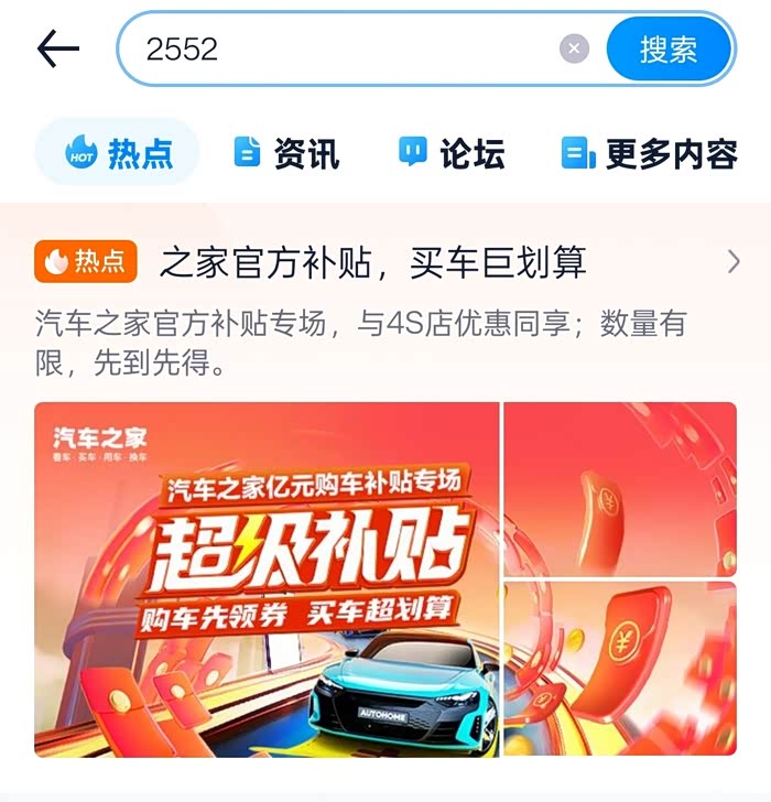 一是可以在汽车之家搜索数字“2552”,瞬间就能抵达活动页面。二是也可以点击链接参与:https://cps.m.autohome.com.cn/activity/supersubsidy/index?ext_businesstags=13&pvareaid=6864917&eid=3|1411003|47|1344|212229|307198