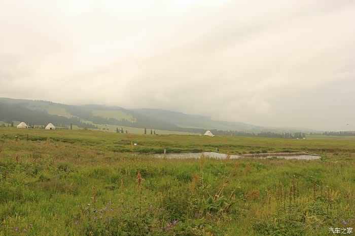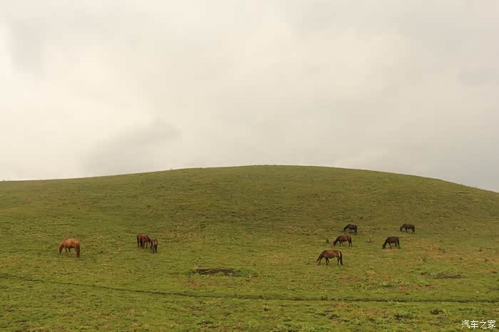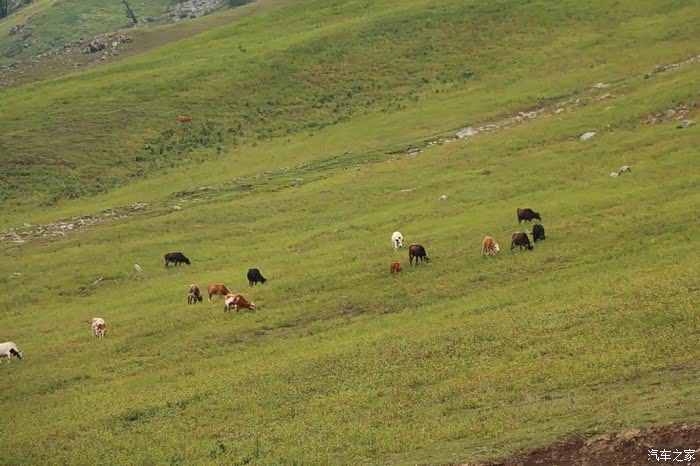 没关注天气的后果就是进入景区一直到出来,始终小雨不断。这样的结果就是除了看到众多的游客、牛羊马、连续不断的园区区间车,还有花花草草外,远处的雪山始终不露峥嵘,一句话:这地方白来了